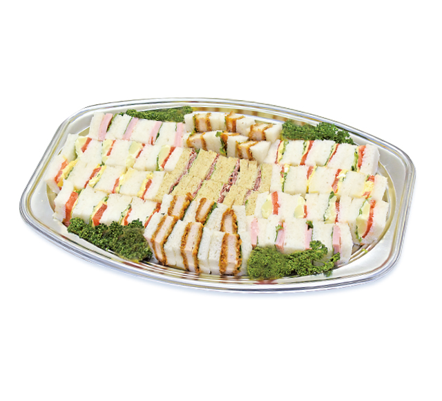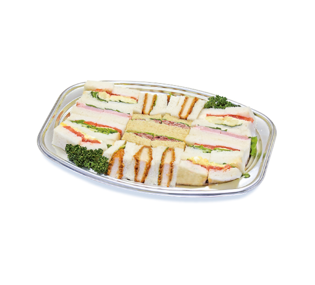 ひと口サイズのサンドイッチに、セレクトしたおかずとデザートを盛り合わせたメニューです。